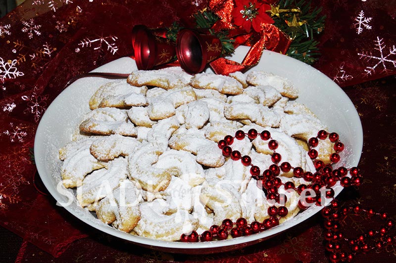 Na vál prosejeme mouku s moučkovým cukrem, přidáme ostatní suroviny a vypracujeme měkké těsto. Rozdělíme je na několik částí, z kterých vyválíme potřebně silné válečky, zabalíme je do potravinové fólie a necháme v chladnu aspoň hodinu odpočinout. Potom válečky postupně protlačíme masovým strojkem (ručním nebo elektrickým) přes nástavec na rohlíčky. Protlačené těsto nakrájíme na stejně velké kousky, vytvarujeme rohlíčky, rozložíme je na plech s papírem na pečení a pečeme při 180°C po dobu 10-12 minut dorůžova. Upečené horké rohlíčky obalíme ve směsi moučkového a vanilkového cukru, popř. jen důkladně pocukrujeme.